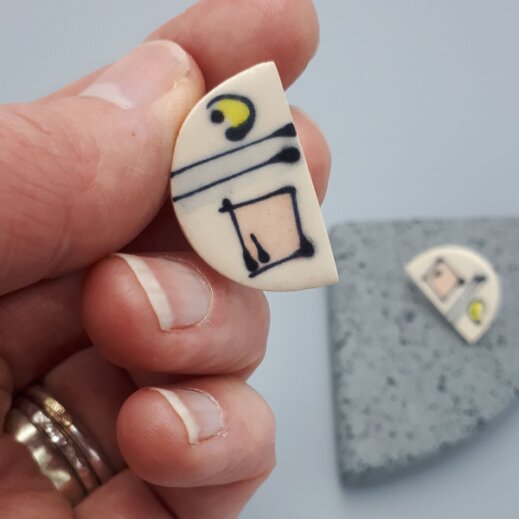 The JEWELLERY collection combines the main elements of the my larger ceramics pieces, in particular my archaeological mapping, minimal linear motifs and mid-century modern art inspired palettes, into distinctive and unique pieces of wearable art.