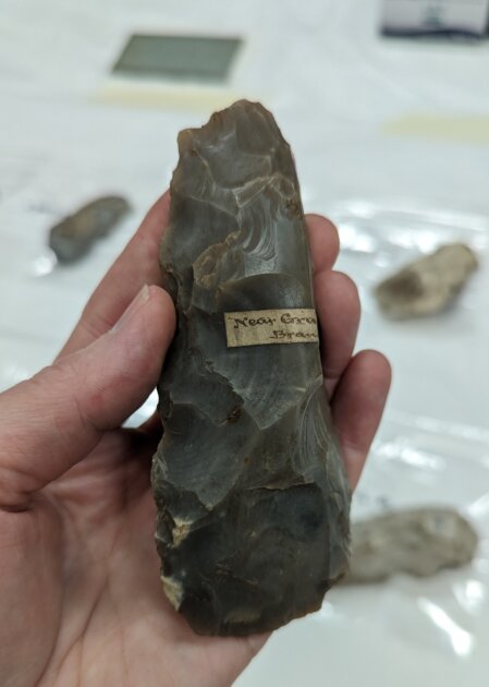 The mines and shallower flint pits at Grimes Graves represent innumerable episodes of extraction and visits to the site over 400 years. Excavation of deep galleried shafts would have been months of work for a large group, however some connections with the site were on a much reduced, more individual scale. Analysis of individual antler picks within a linear group of a shallower flint workings revealed that a several were shed by a single stag on different years. Wonderfully suggestive of a small group of people with a relationship with a particular herd, or indeed individual stag, returning to the same group of pits seasonally over a number of years. Perhaps returning to the site each year as the ground warmed and the deer have shed their antlers in the late spring and early summer.