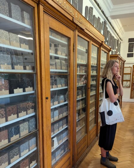 Ever since the application process for the 'Ground Up' residency ideas relating to flint mines, and the deep flint layers and fossils within them, had been entering my creative thoughts. The wonderful tour round the adjoining Sedgwick Earth Sciences Museum with Liz Hide on the residency threw some of these ideas into sharper relief. The wall-to-wall cabinets of stone samples in the Alfred Watson collection - a fascinating Victorian and Edwardian era collection of building stone from Britain and its colonies - and the wondrous display cases of fossils and geological specimens in the main halls told stories of geological time and origin, but also of the history, politics and aesthetics of collection, study and display. The stone samples and fossils acted as signifiers of both geological and social time.
